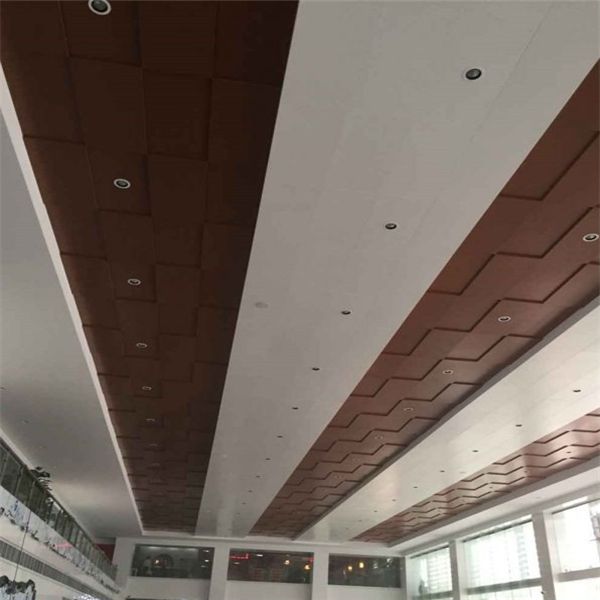 室內(nèi)吊頂裝飾則以扣板為主,扣板有暗架鋁扣板和勾搭式鋁扣板兩種,暗架鋁扣板采用600*600mm和600*1200mm的聚酯粉末噴涂沖孔鋁扣板,